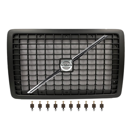BLACK Hood Grille Fits Volvo VNL (2004-2017) Includes Bug Screen, Stripe, Logo & Mounting Hardware