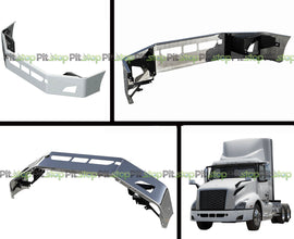 The 2018-current Volvo VNL models have one of the most diverse selections of bumper sets on PitStop. There are two full front bumper sets that have additional parts including two side covers and a five-piece chrome trim set. There is also a full stainless steel chrome bumper assembly, which comes with a fog light and tow hook openings, as well as brackets and mounting hardware. The remaining sets include three pieces and are made of ABS plastic in a black finish with fog-light cut-outs or without.