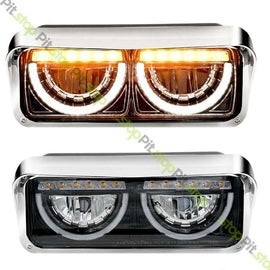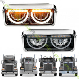 Freightliner Classic Kenworth W900 Peterbilt 357 365 378 379 Western Star 4800 Half moon LED Headlight Set Pair DRL