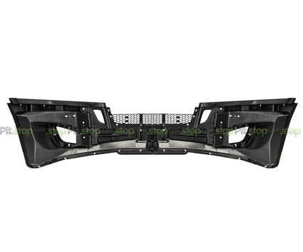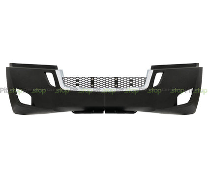 The new gen Freightliner Cascadia full bumper assembly is sold without fog light cutouts and can be used on new gen models (2018-current). This bumper is made from ABS plastic, and is primed and ready to be painted. The bumper is a direct replacement for several OEM parts: